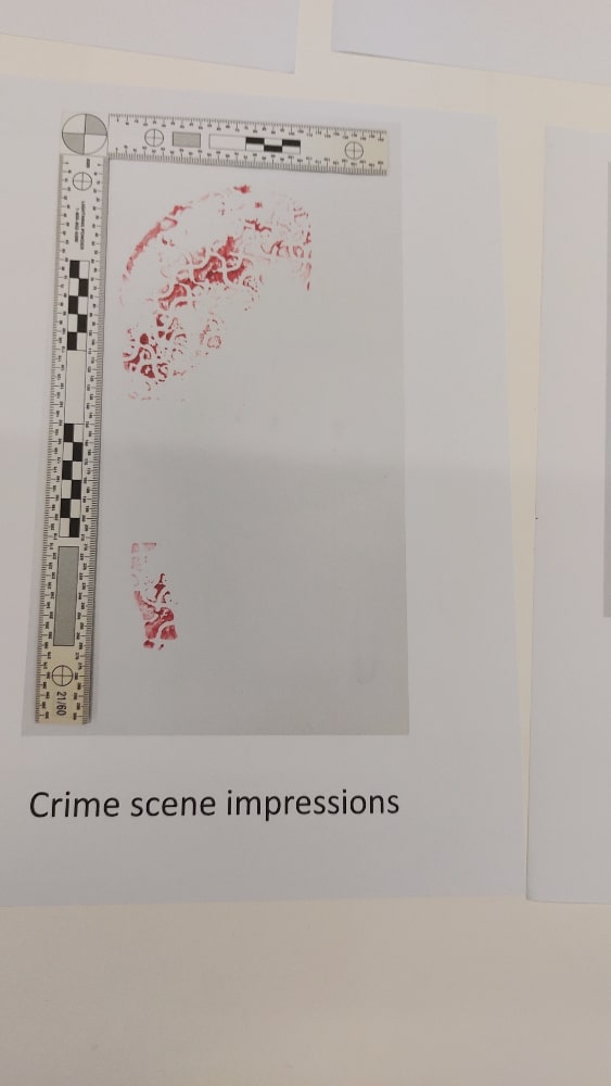 The police asked about shoe sizes because a partial shoe print was found in the blood on the floor on the landing. Unfortunately no blood was found on the suspects’ footwear (possibly due to severed ponding on the premises) but shoe prints from the suspects were taken for analysis and comparison.